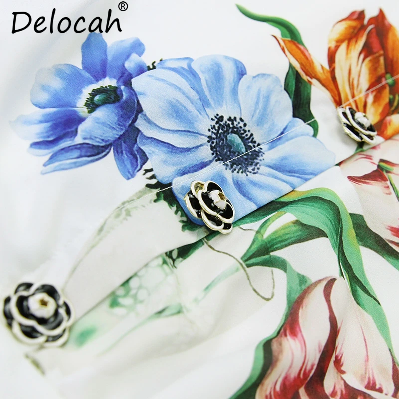 Vente Meilleur Delocah Automne Femmes Moulante Robes Piste Créateur De Mode Arc Col Blanc Imprimé Floral Sexy Élégant Gaine Robe robe Pas Cher En Ligne.