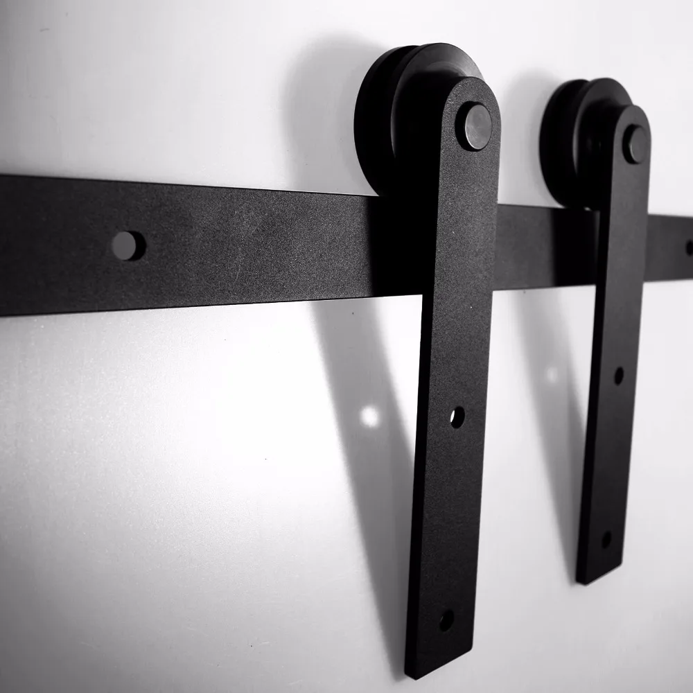 Acheter LWZH Pays Style Grange Porte 6FT 7FT 7.5FT 9FT Noir En Acier Au Carbone Coulissante Grange Porte Je Piste en forme de Rouleau pour Double Porte Pas Cher Prix