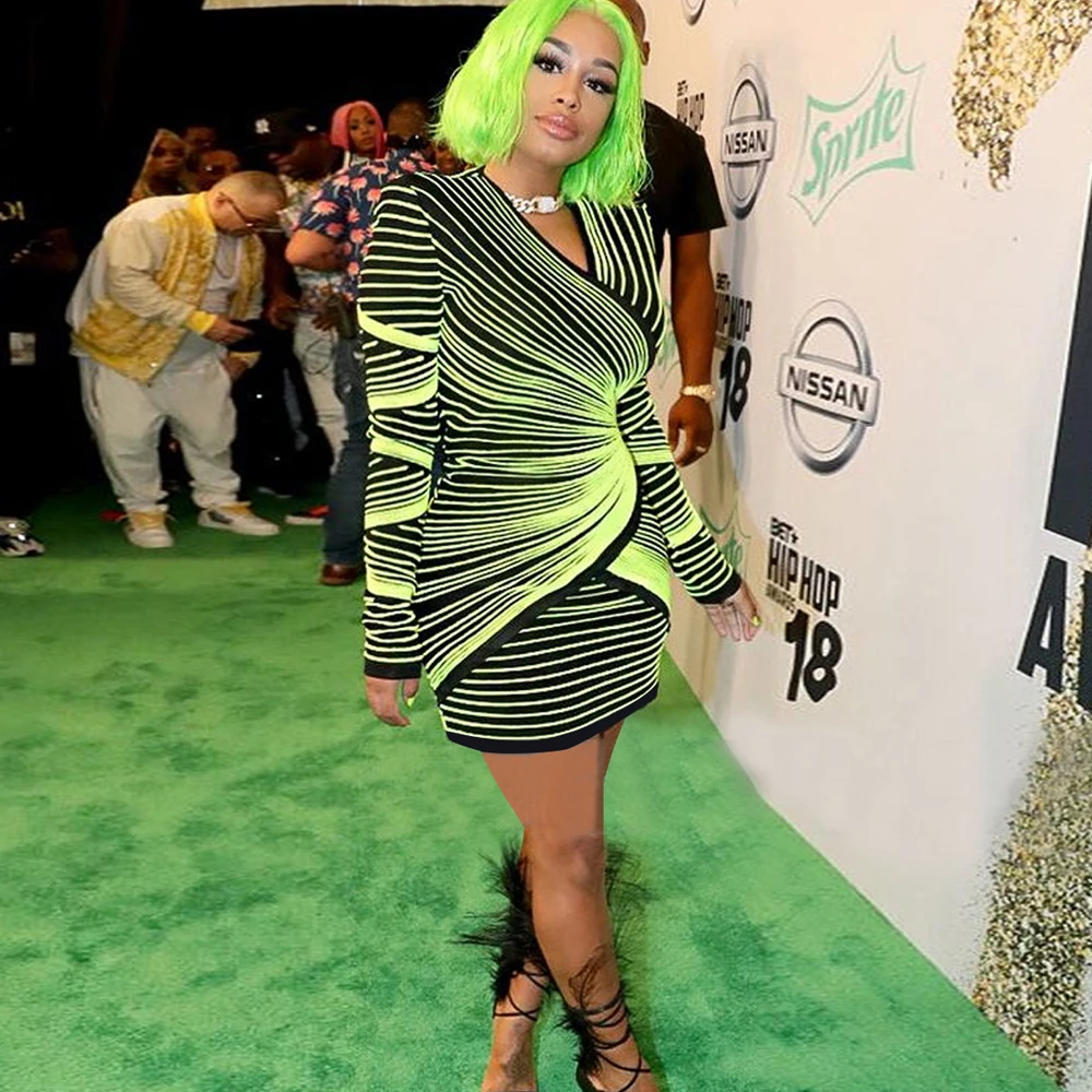 Acheter Meilleur YUYOU Sexy de Femmes Numérique Positionnement Impression Col V À Manches Longues Robe Vert Fluorescent Stéréo Motif Sexy Discothèque Robe Pas Cher Prix.