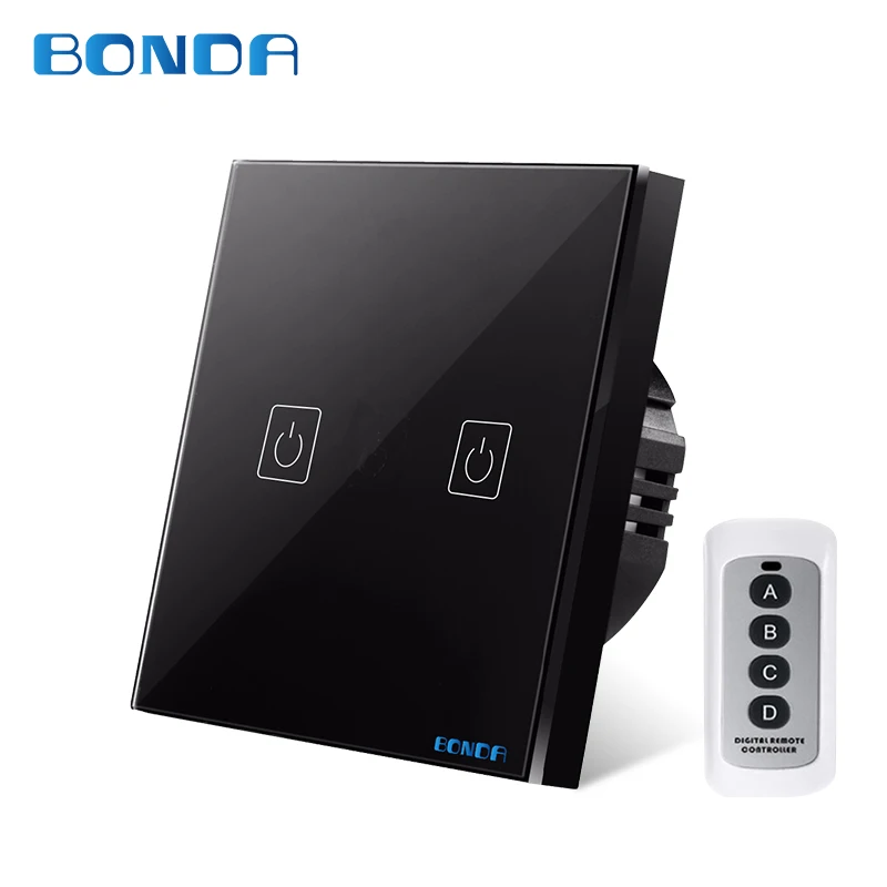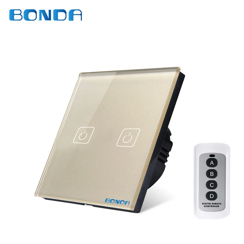 . Achat BONDA véritable UE ROYAUME UNI standard deux ouvert sans fil télécommande commutateur de luxe panneau verre cristal écran tactile wall light commutateur Pas Cher En Ligne.