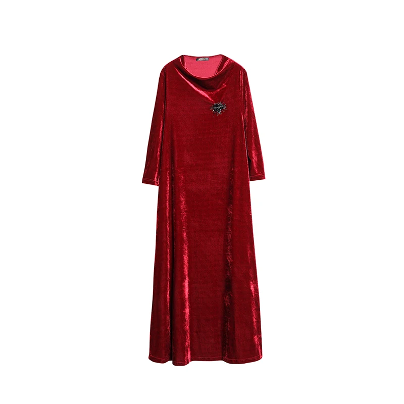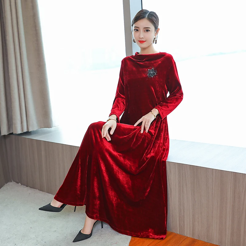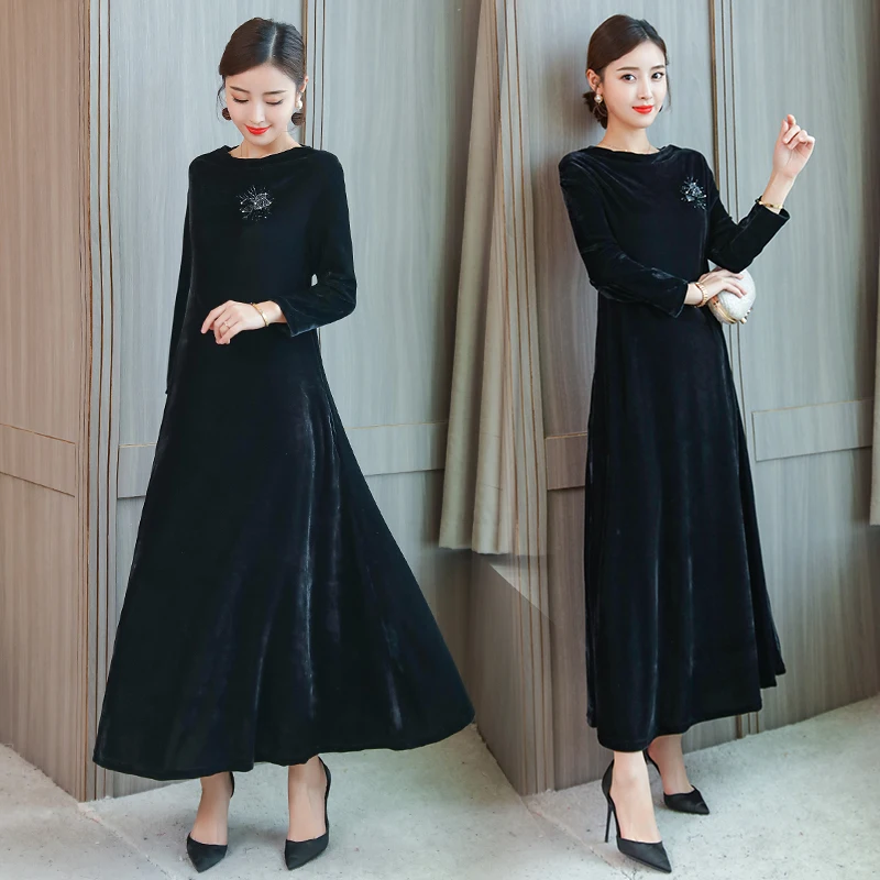 Acheter À manches longues en velours robe femmes maxi élégant plus la taille grand vert hiver automne 2019 vintage partie robe robes noir vêtements Pas Cher Prix