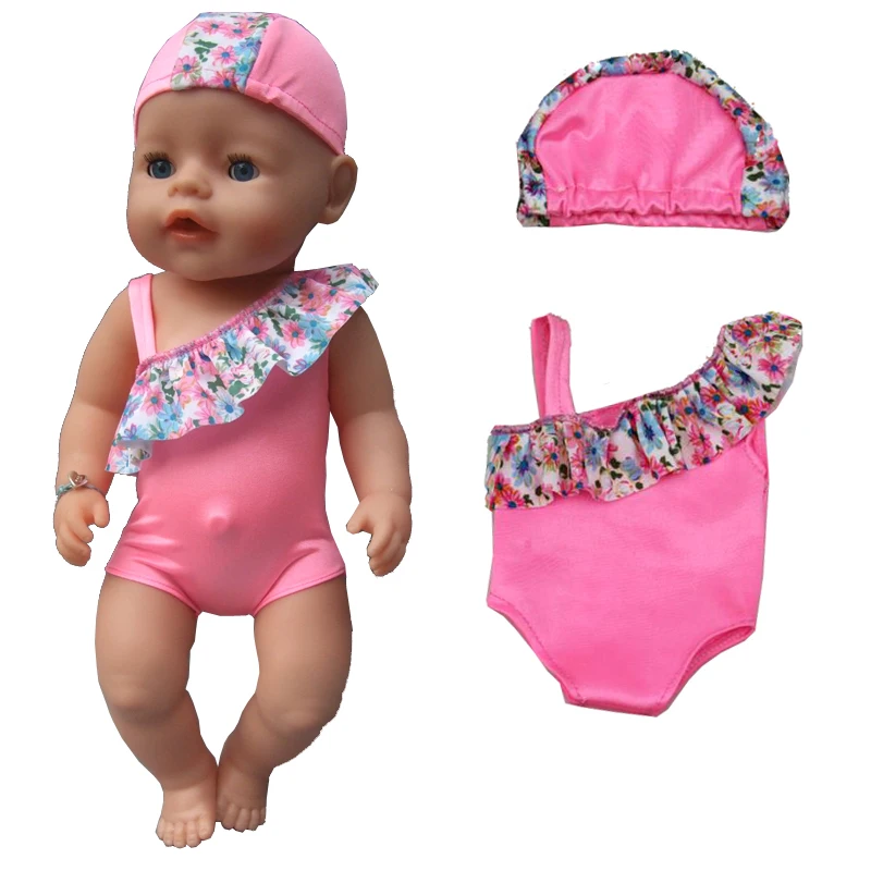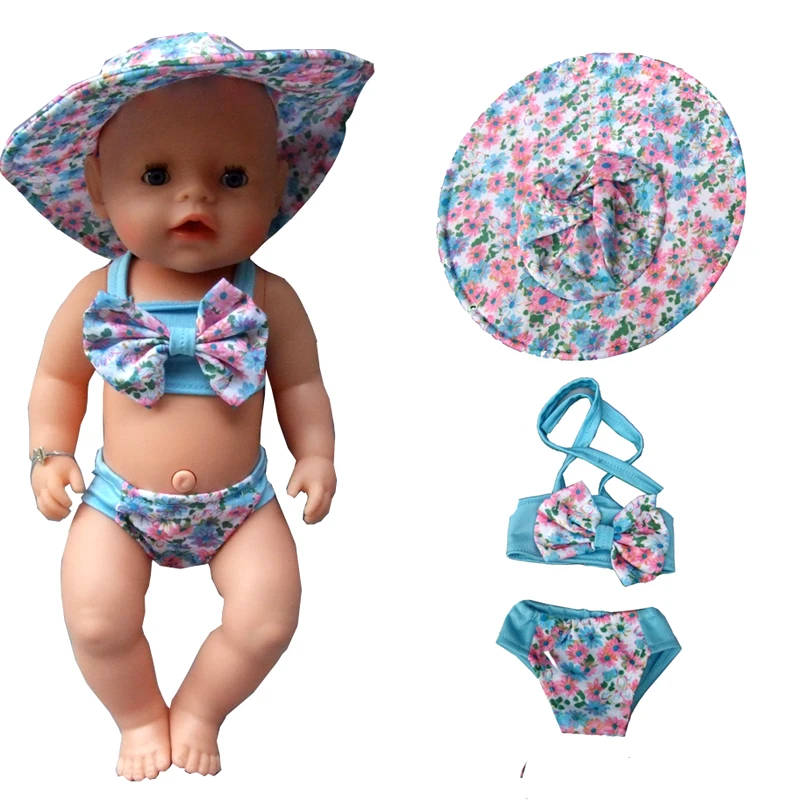 Vente Été ensemble Pour 18 \"fille Poupée Bikini + Cap d été Maillot De Bain Avec Chapeau également fit pour 43 cm bébé poupée Vêtements Pas Cher En Ligne