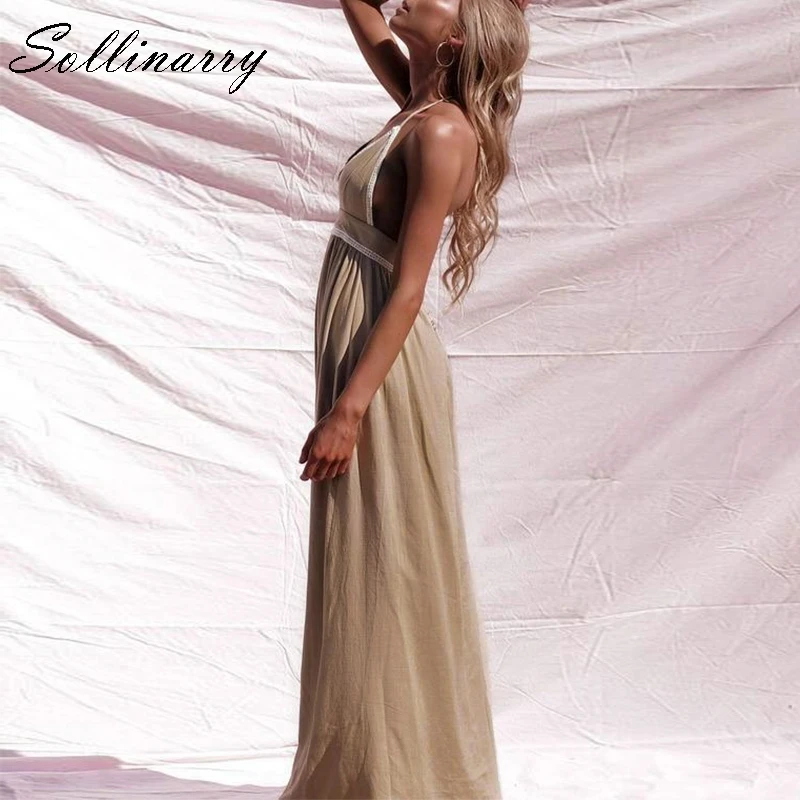 Vente Meilleur Sollinarry Dentelle up V Partie Cou Maxi Robe Femmes Backless de Split Robe De Courroie De Gaine Sexy Élégant Lin Longue Robe Robes Pas Cher En Ligne.