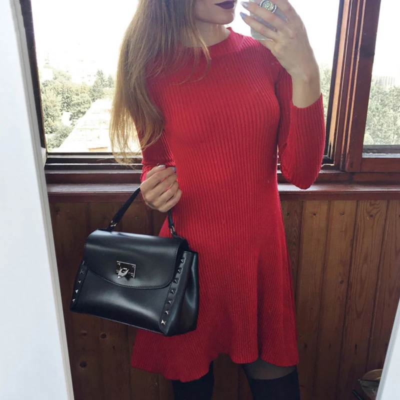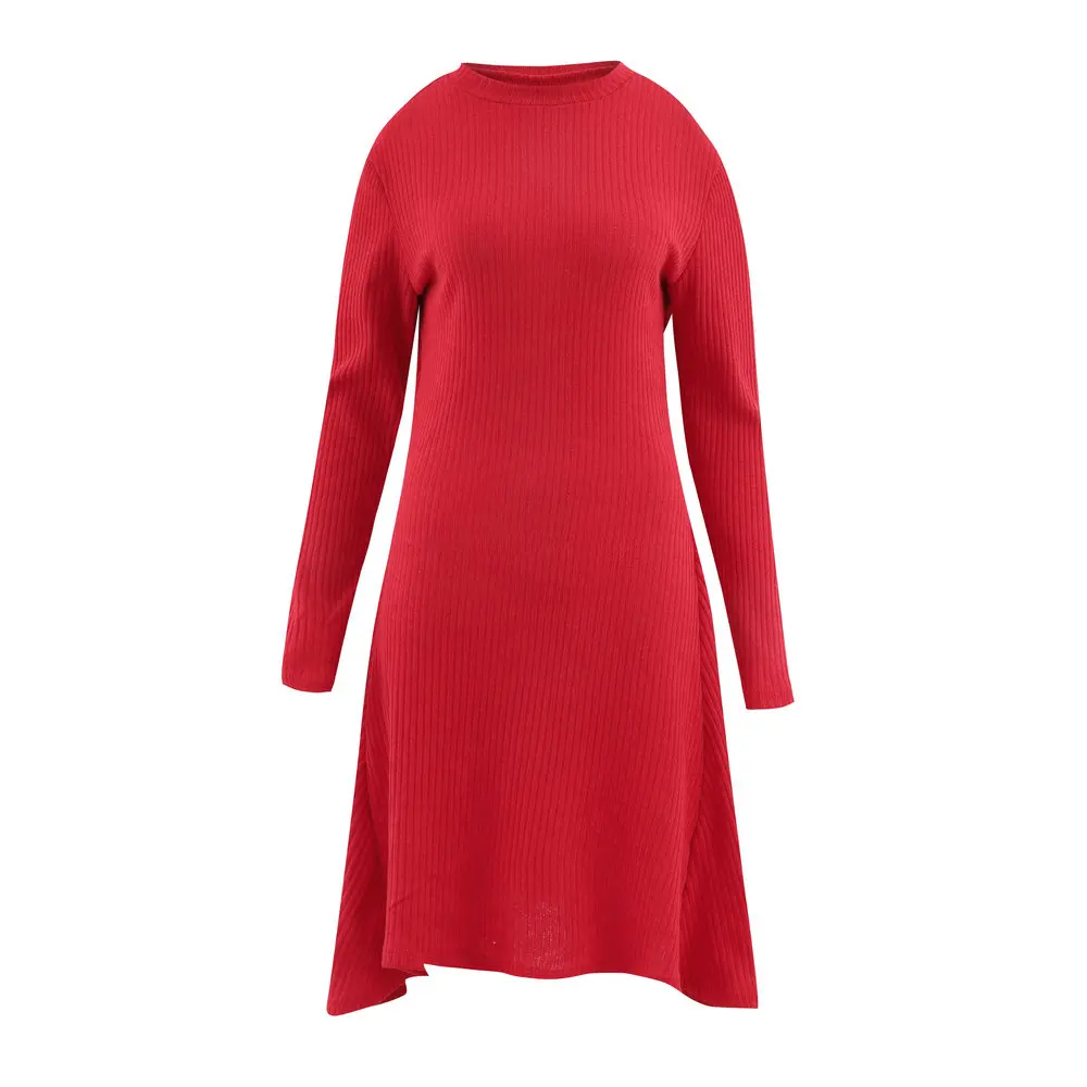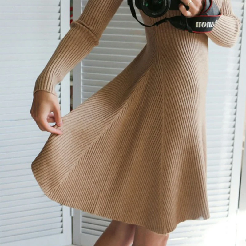 . Acheter Missufe O Cou Mince À Manches Longues Automne Robe Drapée Mini Une Ligne D hiver Maj Casual Femmes Robe Pas Cher Prix.