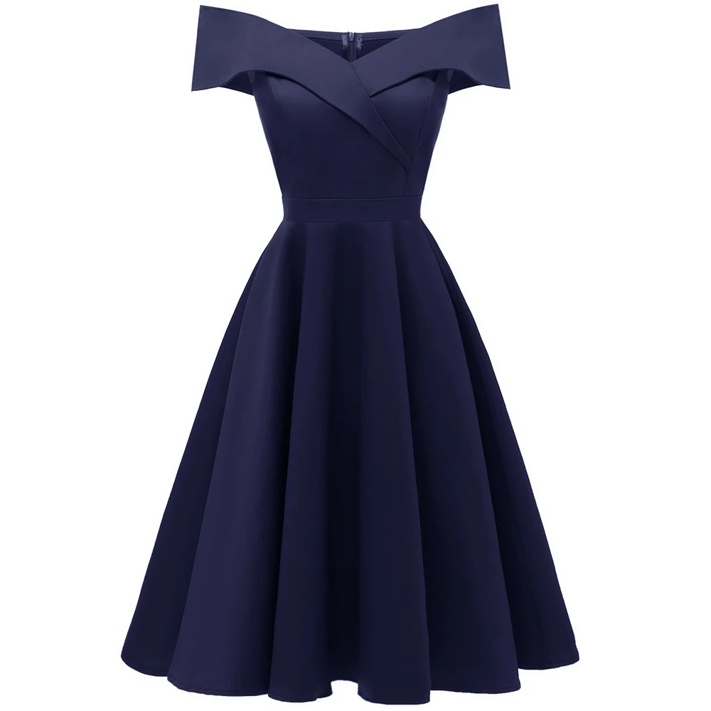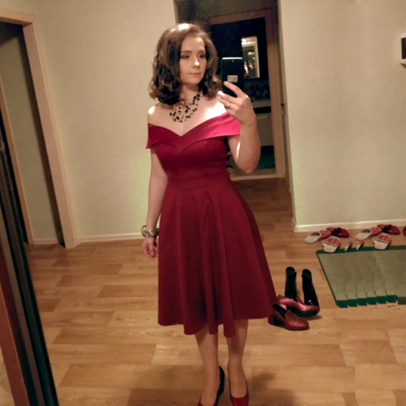 . Acheter Sisjuly Femmes Automne Robe Sexy Élégante Encolure 2018 Coton Élastique A ligne Lady Slim Slash Cou Vintage Court Robes de Soirée Pas Cher En Ligne.
