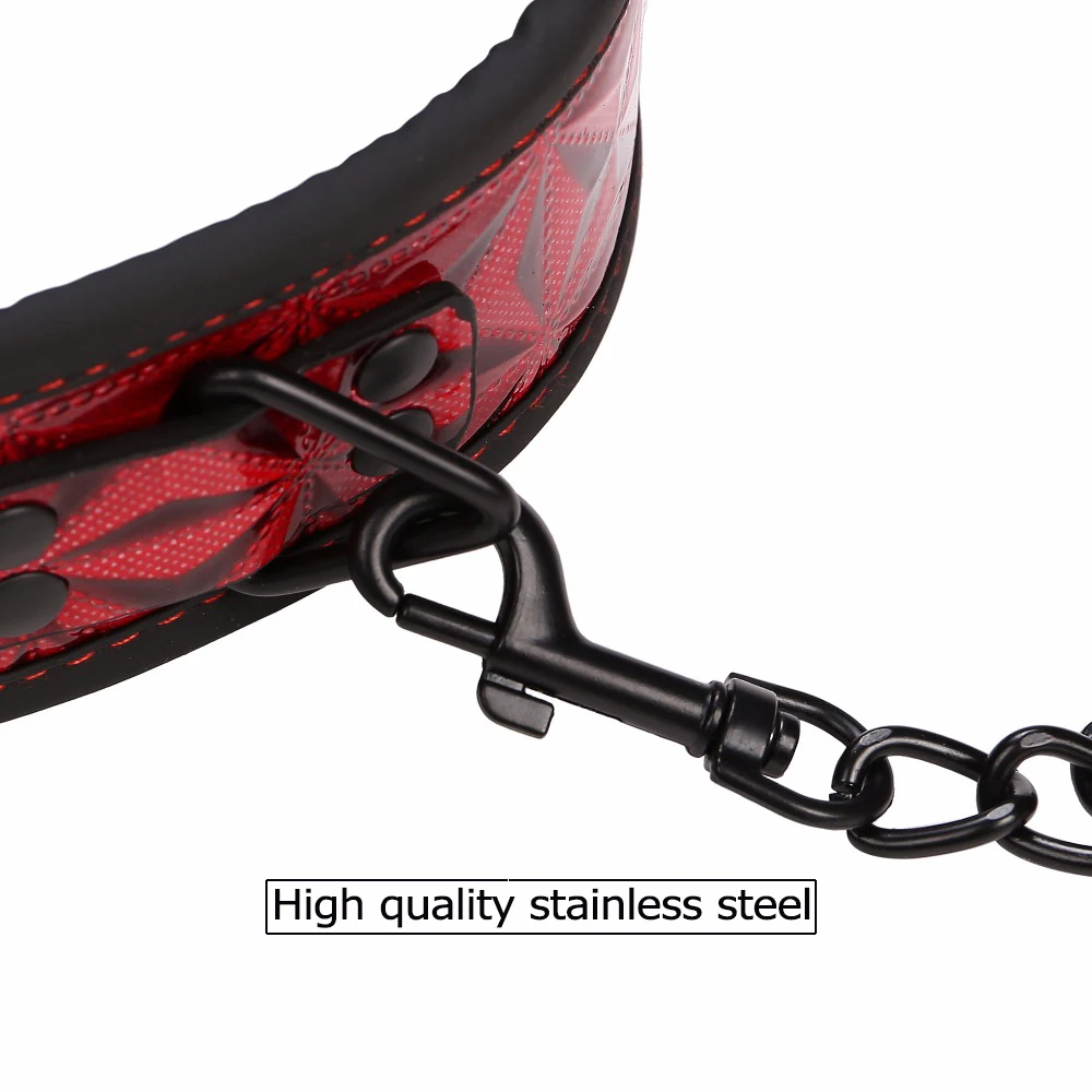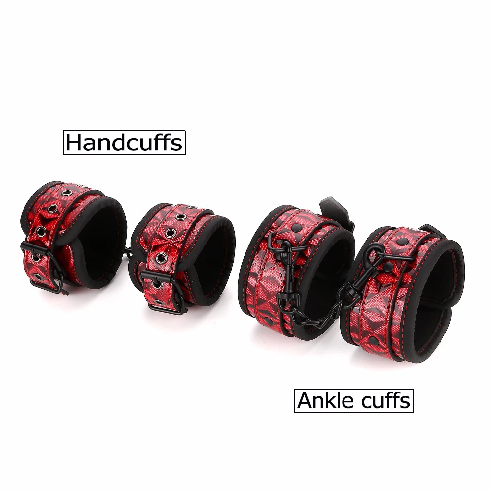 Acheter Top Qualité En Cuir PU BDSM Bondage 5 pcs ensemble Sexy Lingerie Menottes Footcuff Fouet Sex Toys pour Les Couples de Sexe Accessoires Pas Cher En Ligne