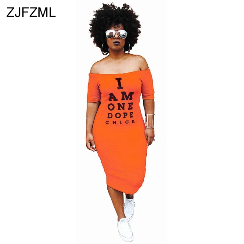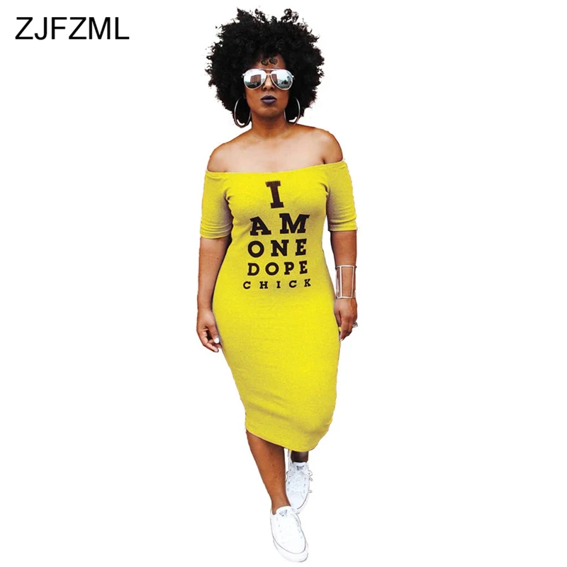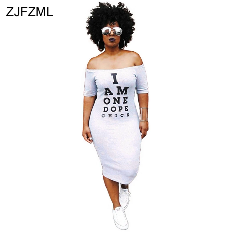 Vente Meilleur ZJFZML Grande Taille Décontracté Robe Moulante Femmes Épaule Froide Lettre Imprimé Paquet Hanche Robe Automne Slash Cou Manches Courtes Robe Pas Cher Prix.