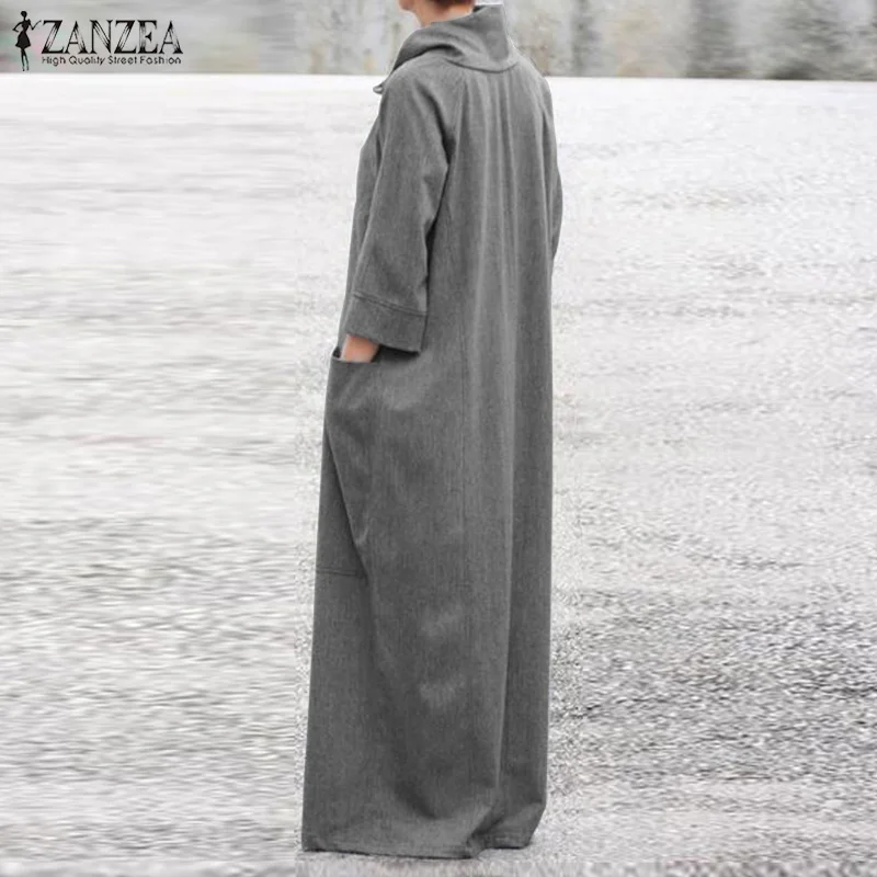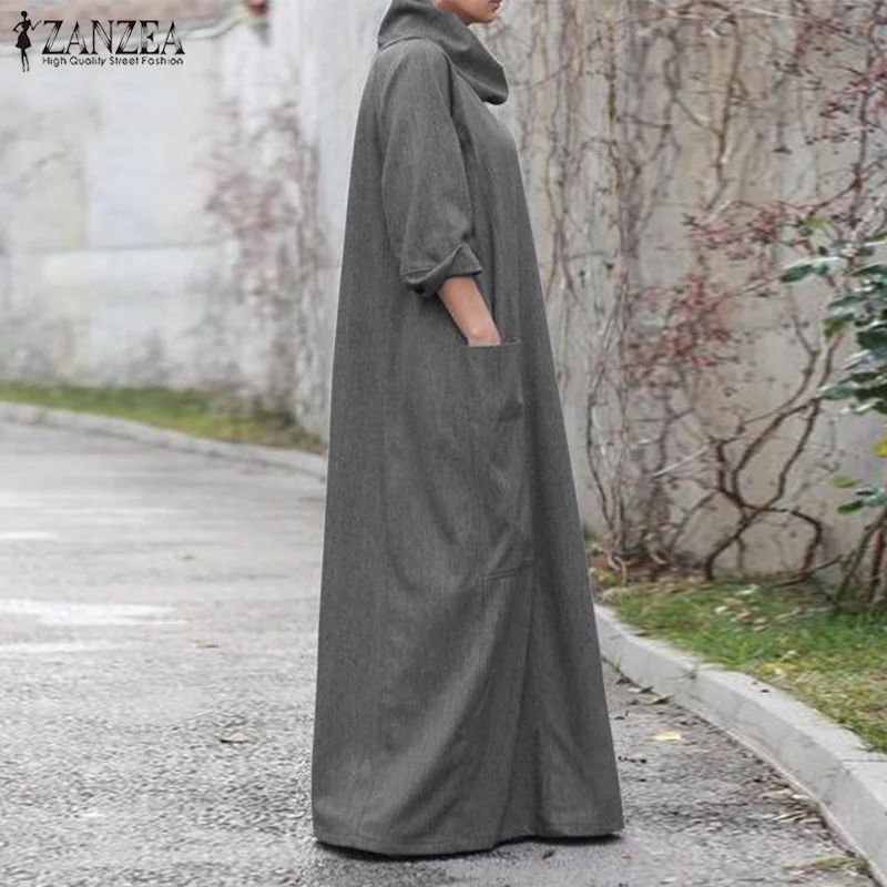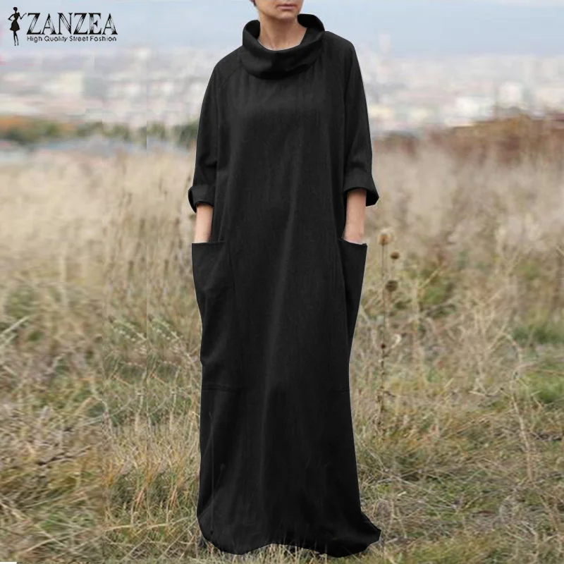 Acheter 2018 Automne ZANZEA Femmes Casual Col Roulé À Manches Longues Kaftan Mode Parti Maxi Robe Vintage Solide Lâche Longue Chemise Robe Pas Cher Prix