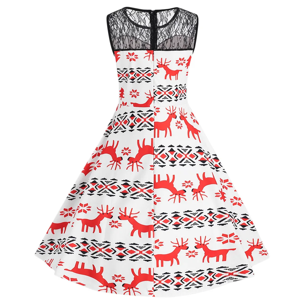 Acheter Meilleur Automne Printemps Robe De Noël Femmes Slim Vintage Robe Casual Manches Élégant Parti Taille Haute Dentelle Une Ligne Robes Robes Pas Cher Prix.