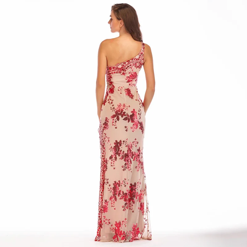 . Vente D142 élégant une épaule high side de split étage longueur longue robe à paillettes Pas Cher Prix.