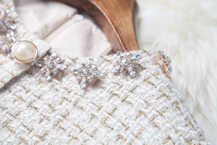Vente Meilleur Dames robe de mode tempérament rétro tweed col rond de luxe diamants mince mi longueur élégante robe automne et d hiver nouvelle Pas Cher En Ligne.