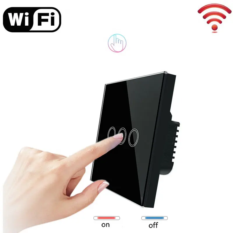 Acheter Meilleur L UE Standard 2 Gang Interrupteur Wifi Soutien Alexa Voix Contrôle Mur Light Touch Commutateur Smart Home verre panneau tactile commutateur Pas Cher En Ligne.