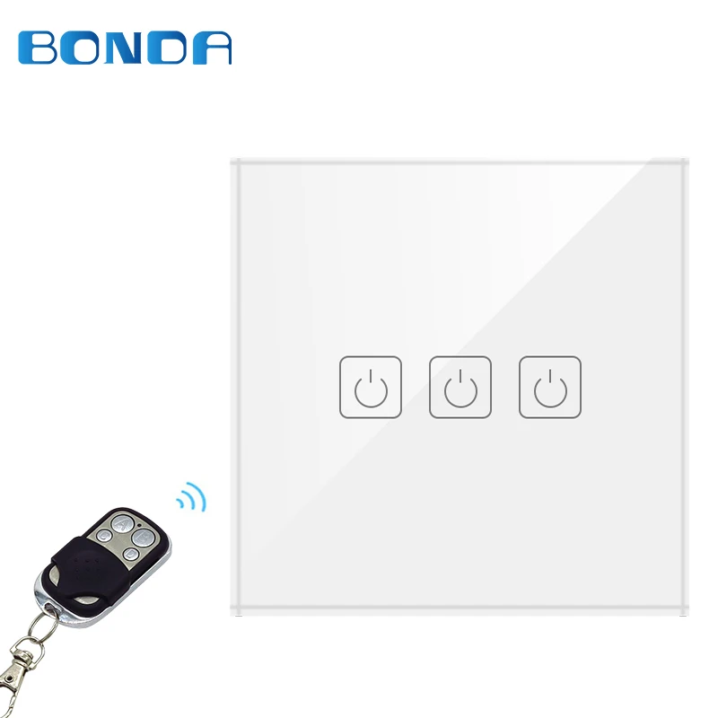 Vente Meilleur BDNDA L UE standard 3 ouvert RF433 sans fil télécommande lumière interrupteur mural de luxe écran crystal glass touch panel indicateur LED Pas Cher En Ligne.