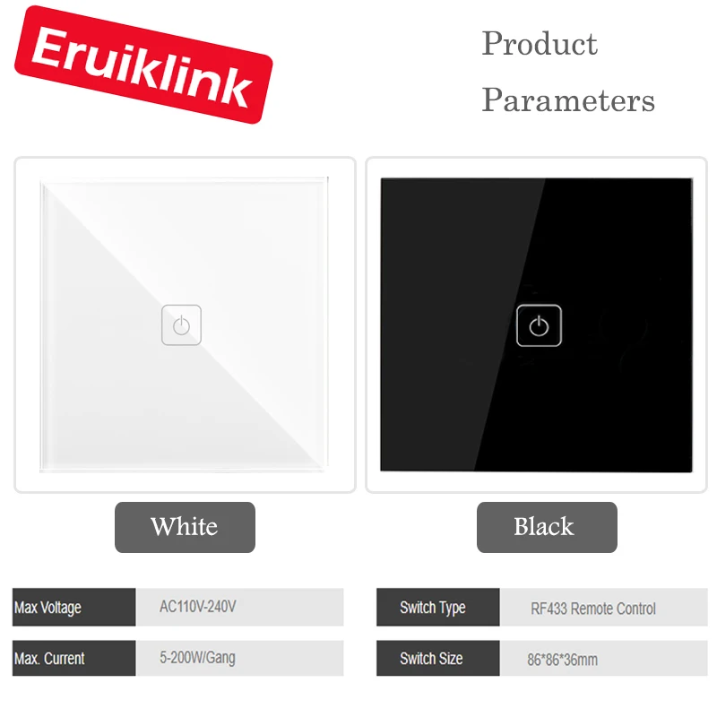 Acheter EU UK Standard Eruiklink 1 2 3 Gang RF433 Télécommande Mur Tactile Interrupteur, sans fil À Distance Des Interrupteurs de Commande Maison Intelligente Pas Cher En Ligne