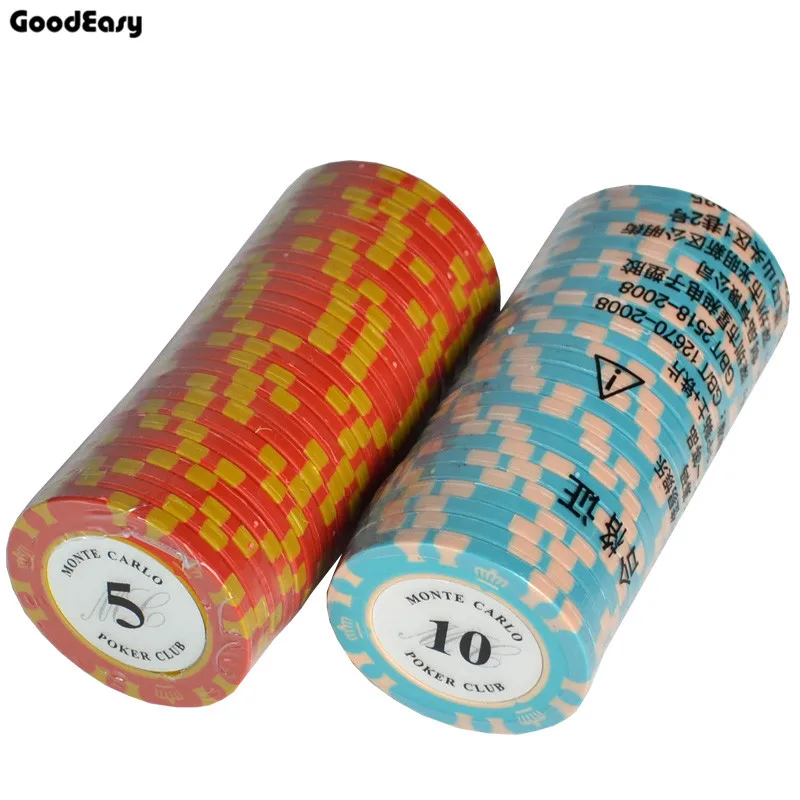 Achat 25 pcs ensemble Multi couleurs 14g Casino Baccarat Couronne Monte Carlo Conception Argile Poker Puce Intérieure En Métal avec Garniture autocollant Pas Cher En Ligne