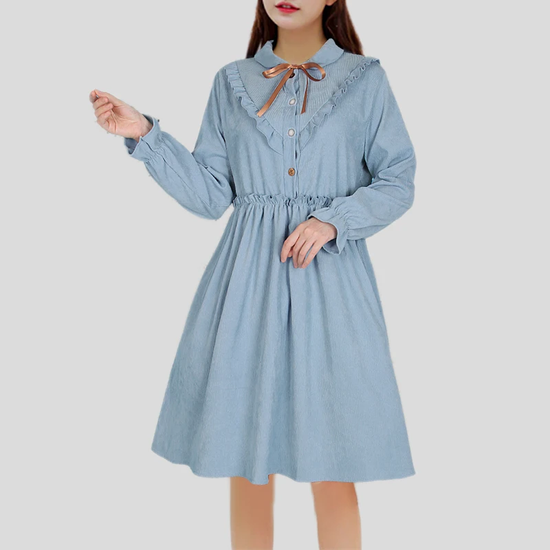 Acheter Meilleur Haute qualité vintage en velours côtelé à manches longues Turn down collar mori fille jaune rouge femmes robe automne hiver casual dames robes Pas Cher Prix.