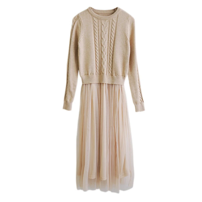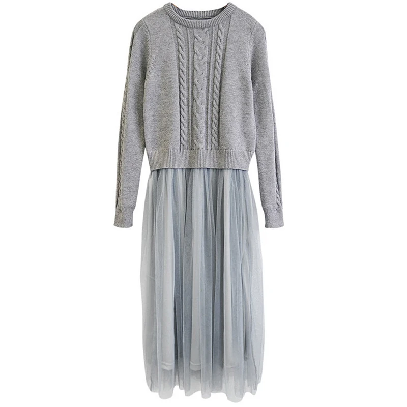 Acheter Jocoo Jolee Automne Hiver Femmes Lâche Robe Dames Solides Manches Longues Vintage Robe Féminine Patchwork Maille Pull En Tricot Robes Pas Cher Prix