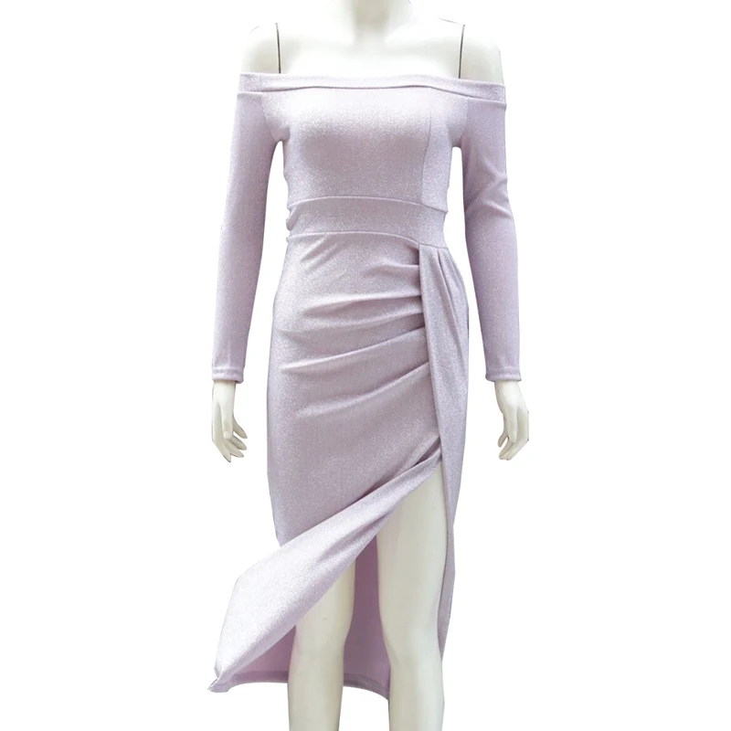. Achat Kimuise Casual Parti Automne Hiver À Manches Longues Plissée Automne Robe Robes Encolure Haut de Split Sexy Robe Moulante Femmes Pas Cher Prix.