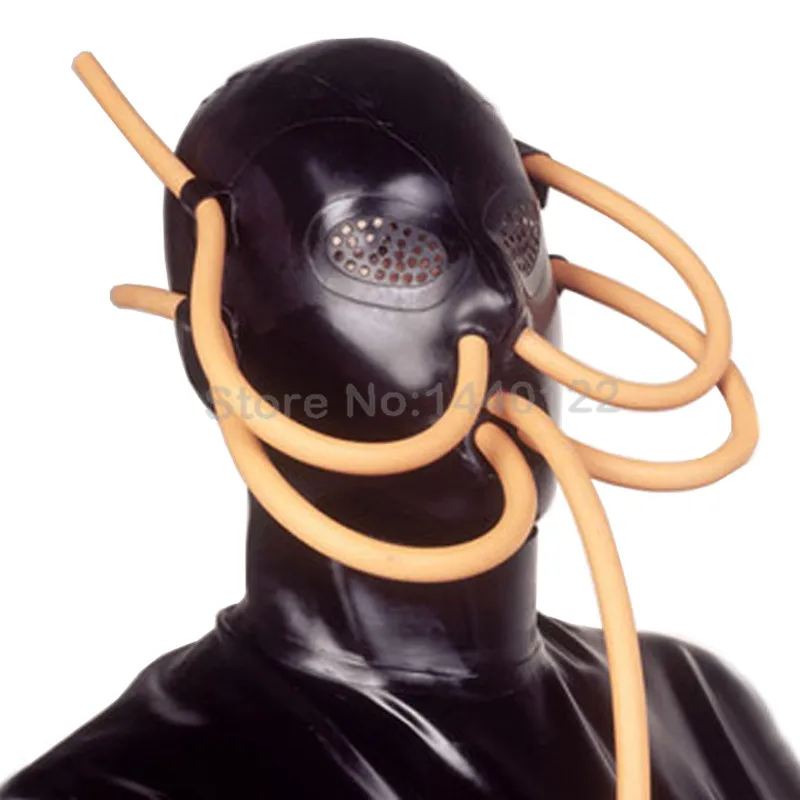 Acheter Meilleur Noir Latex Masque de Cagoule avec Caoutchouc Tubes de Respiration Unique Poulpe Latex Naturel Masque avec Yeux Trous B LM177 Pas Cher Prix.