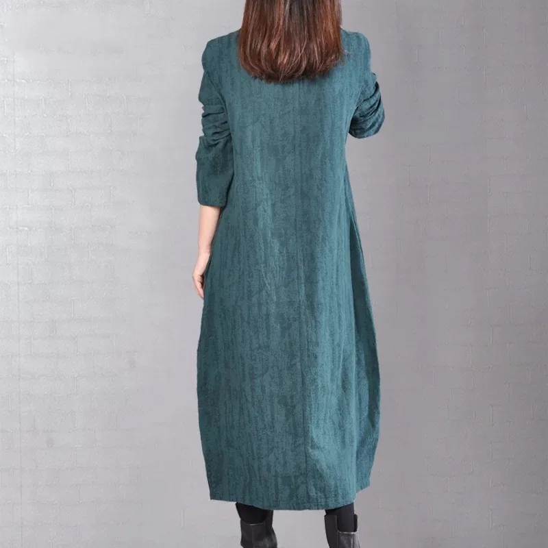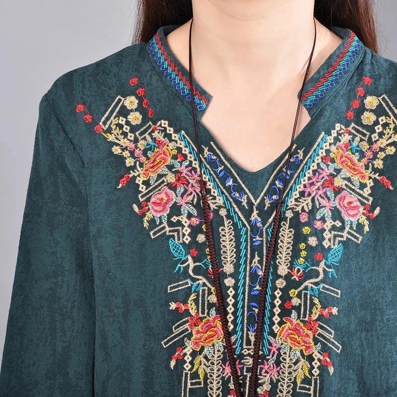 Achat Meilleur Automne Fleur Brodé Coton Lin Femmes Robe Lâche Vintage V Cou Dames Élégantes Robes 2018 Nouvelle Mode Femmes Vestidos Pas Cher Prix.