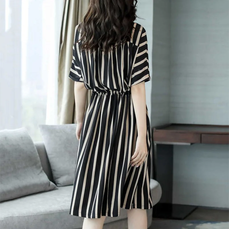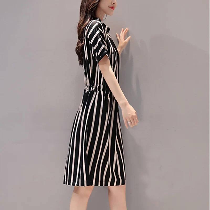 Achat Meilleur 2018 Vertical Rayé Moitié Manches D été Mince Robe A ligne Rayures 3XL Empire Taille T Shirt Tunique Maj Parti Robe 7.3 Pas Cher Prix.