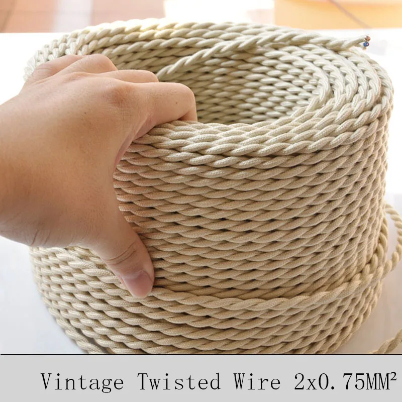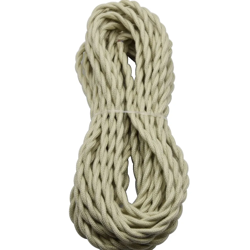 Acheter 2*0.75mm Vintage Tordu Fil Électrique Beige Textile Câble Edison Vintage Lampe Cordon Tressé Rétro Pendentif Lumière Lampe fil 10 m Pas Cher Prix