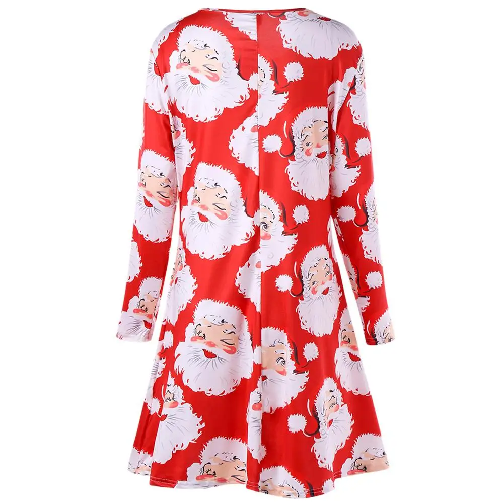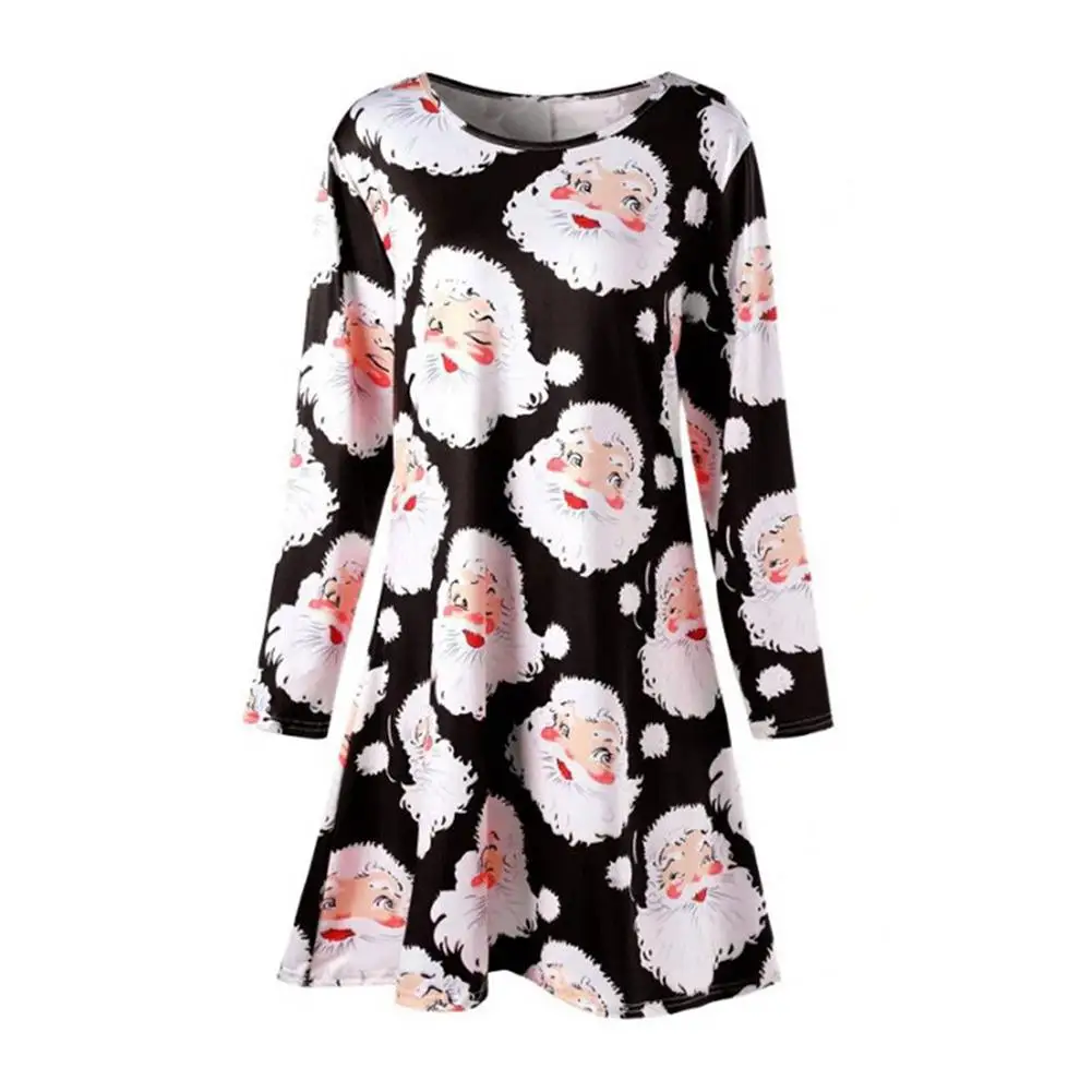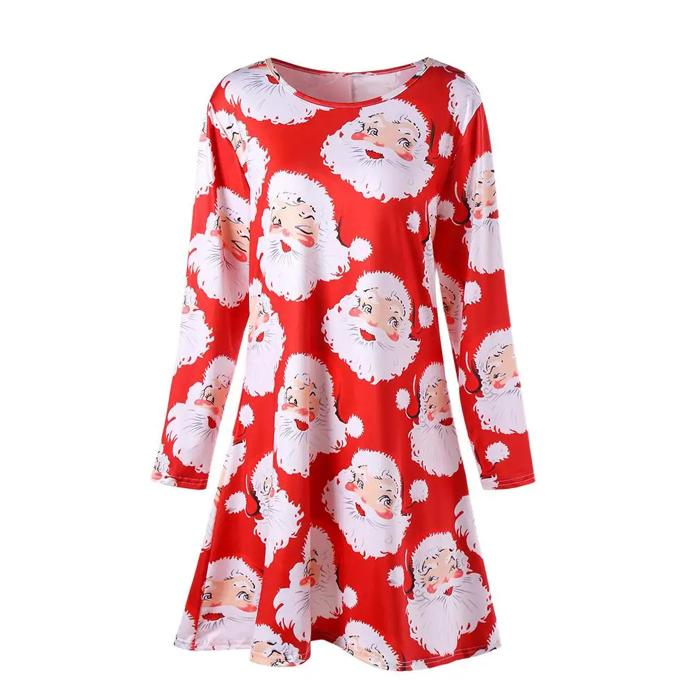 Achat Plus la Taille 5XL Femmes de Robe À Manches Longues Col Rond De Noël Santa Impression Robe Swing Mini De Noël Jumper Robe robes Pas Cher En Ligne