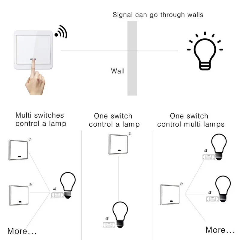 Acheter Meilleur Sans fil Télécommande Interrupteur AC85 260V Récepteur Panneau Mural Transmetteur Hall D entrée Chambre Plafonniers Mur Lampes Sans Fil TX Pas Cher Prix.