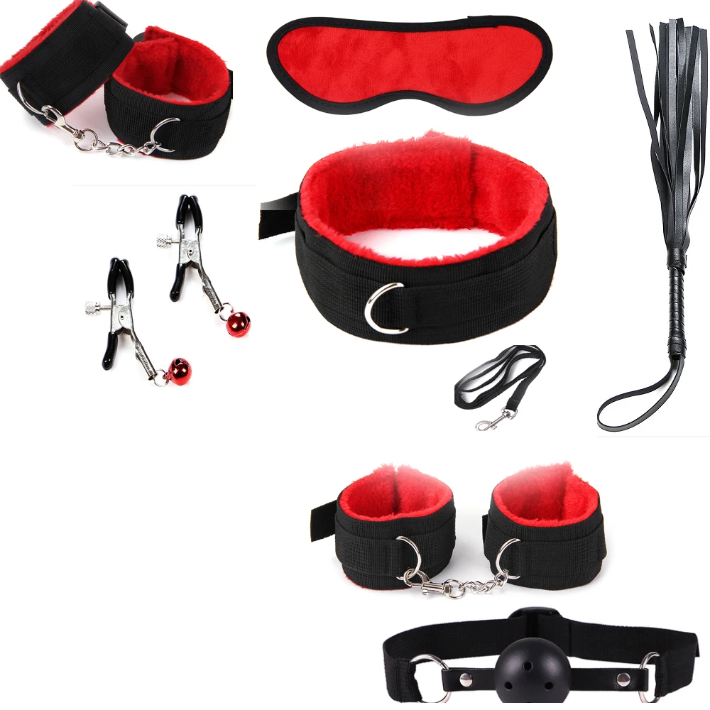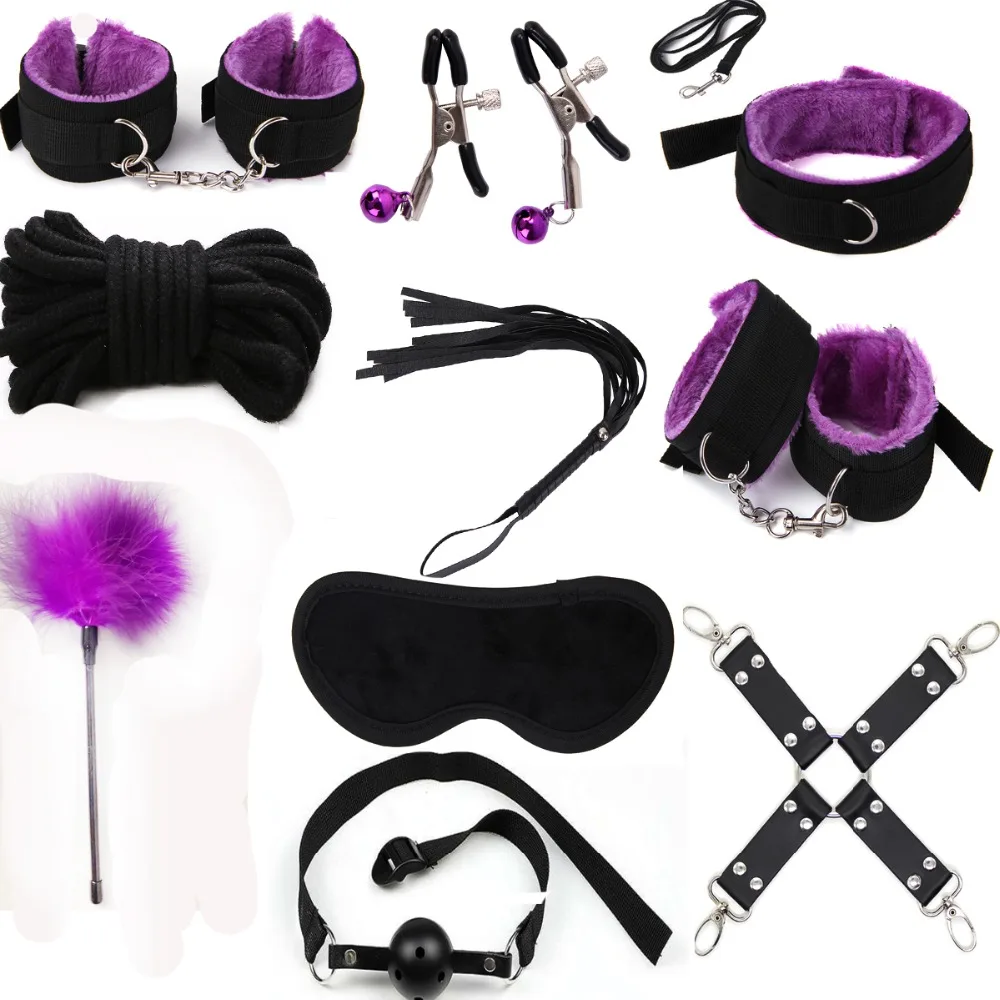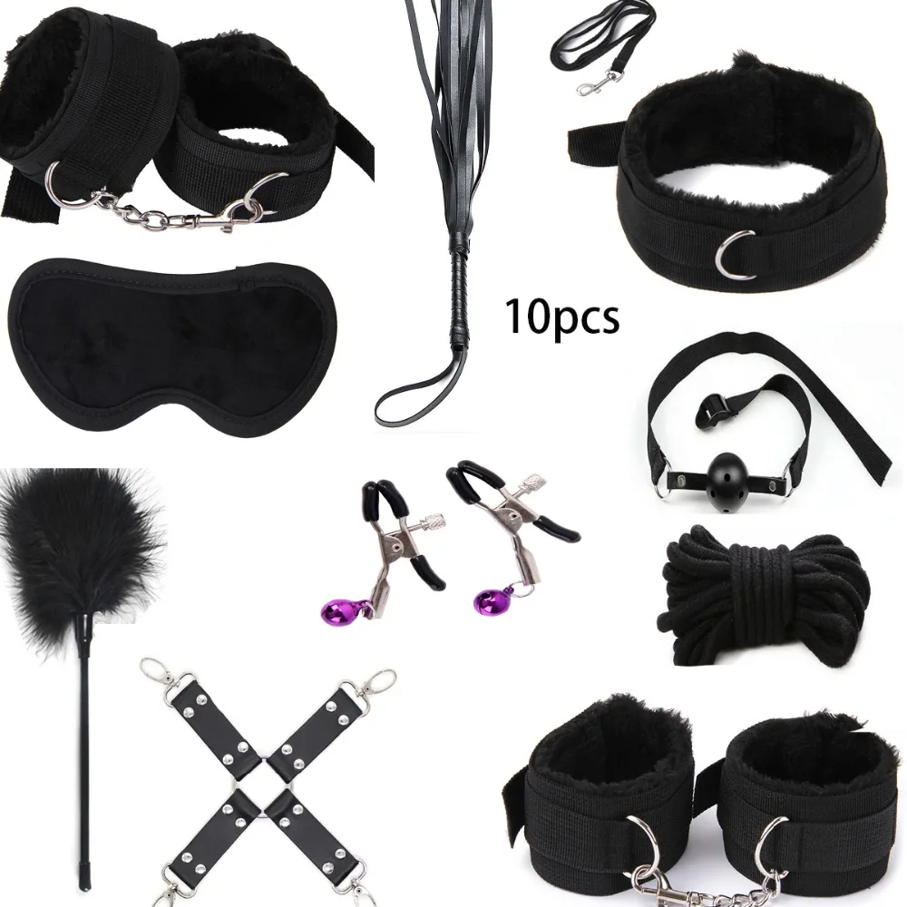 Acheter Meilleur Sortie d usine 10 pcs ensemble Sexy Lingerie Sexe BDSM Bondage Menottes Footcuff Fouet Corde Bandeau Jouets Érotiques Pour les Couples Pas Cher En Ligne.