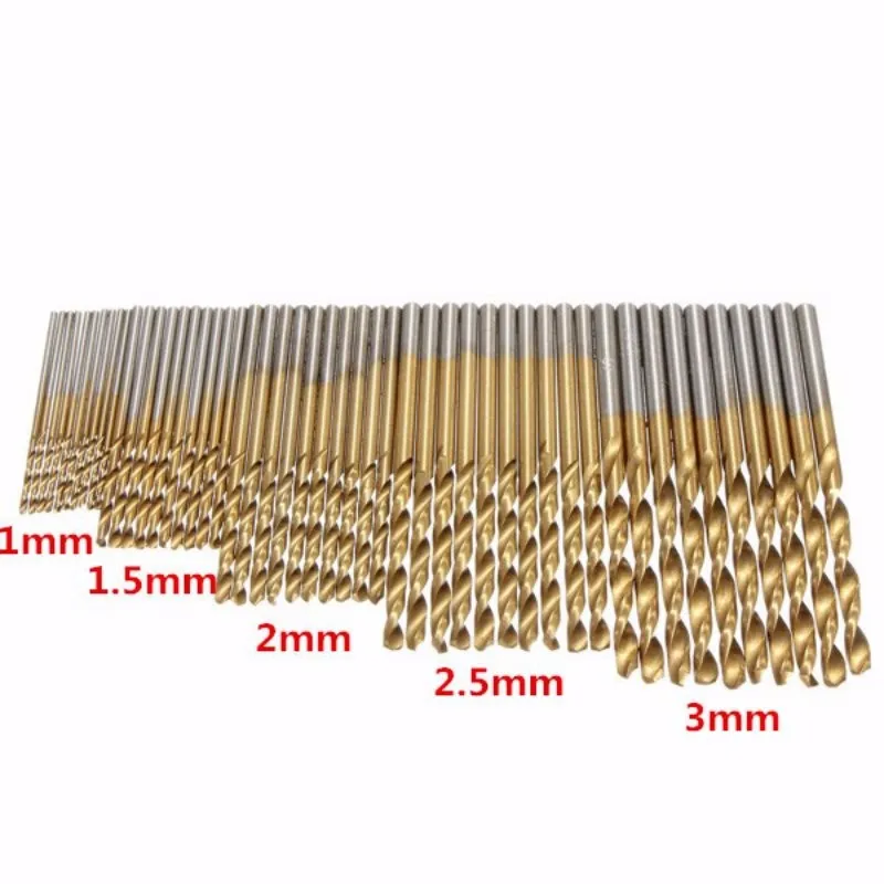 Vente Meilleur 50 pcs ensemble au Titane HSS High Speed Steel Twist Forage Bit Set Outil 1mm 3mm Pas Cher Prix.