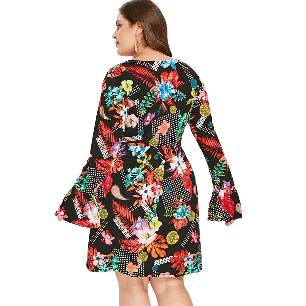 . Vente Plus la Taille Boho Casual V Cou Robe Automne À Manches Longues Élégant Robe Vintage Maxi Femmes Robes Imprimé Tropical Surplis Robes Pas Cher Prix.