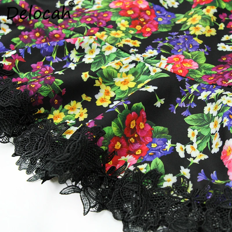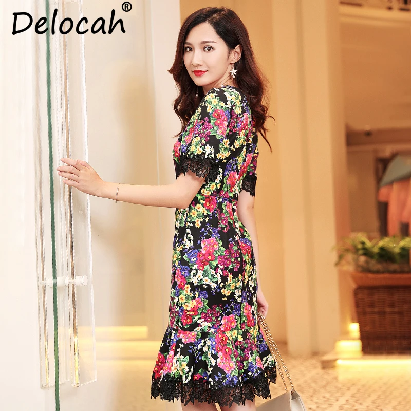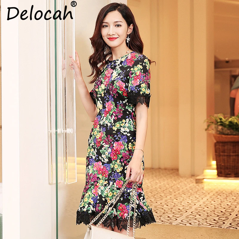 . Acheter Delocah Automne Femmes Robe Mode Piste Designer Dentelle Vintage Fleur Imprimer Slim Sexy Sirène Robes de Soirée Moulante robe Pas Cher Prix.