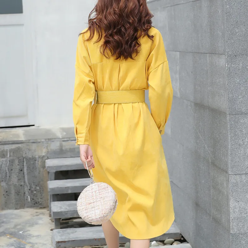 Achat Nouveau 2018 Automne Hiver Velours Côtelé Chemise Robe Femmes Chemisier Chemise Robe Vintage Large Ceinture Lâche Robes Robes Robe Féminine Pas Cher Prix