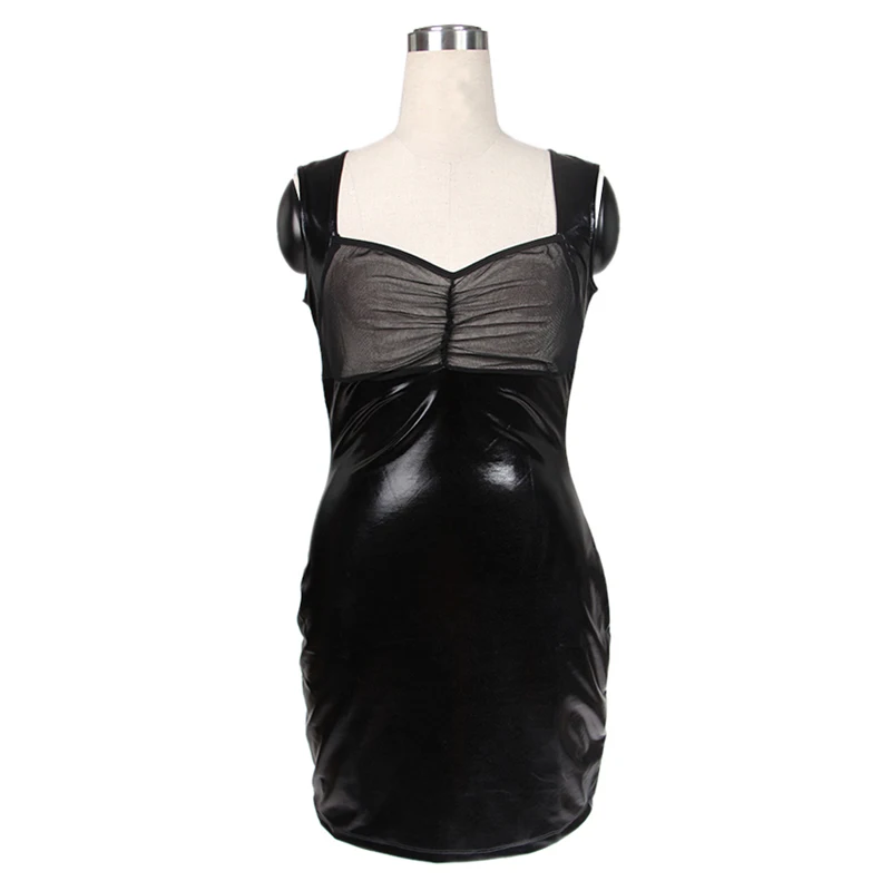 Achat Meilleur Femmes D été Sexy Club Robe Faux En Cuir Vinyle Noir Sheer Voile Retour Moulante Parti Robe Voir À Travers Mini Robes Pas Cher En Ligne.