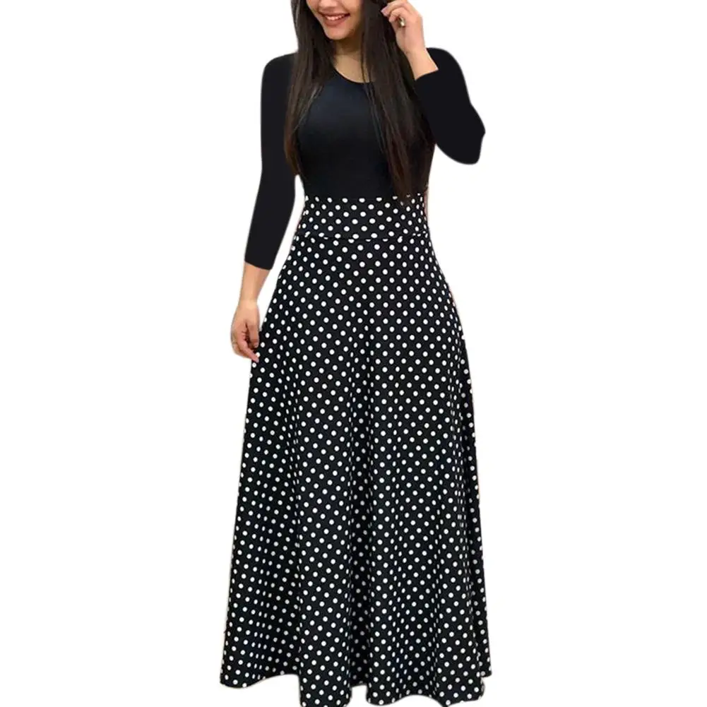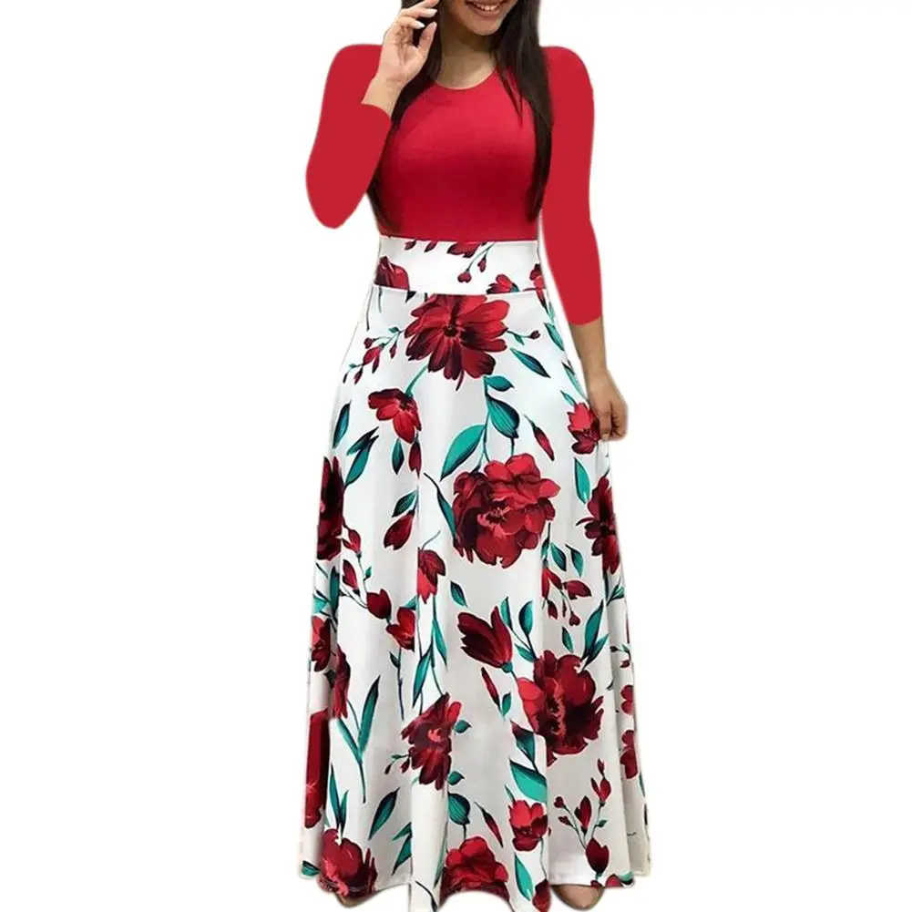 Vente Nouveau Style Européen et Américain Automne et D hiver Imprimer Manches Longues O cou Robe De Mode Casual Minceur Élégante de Partie Longue Robe Pas Cher Prix
