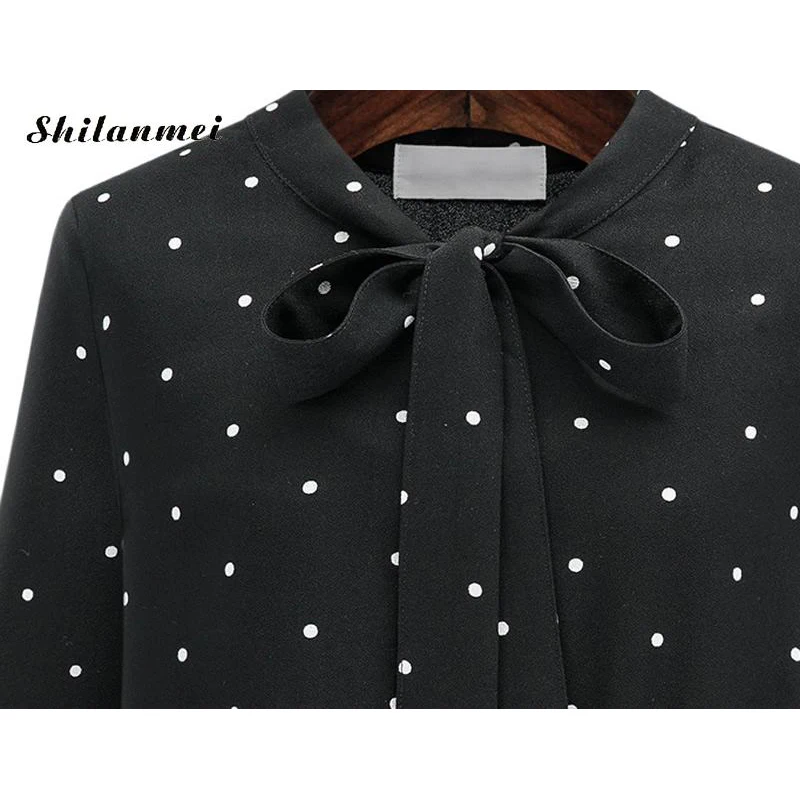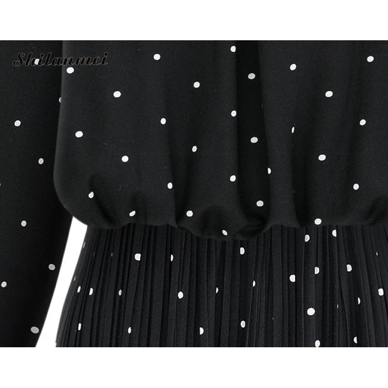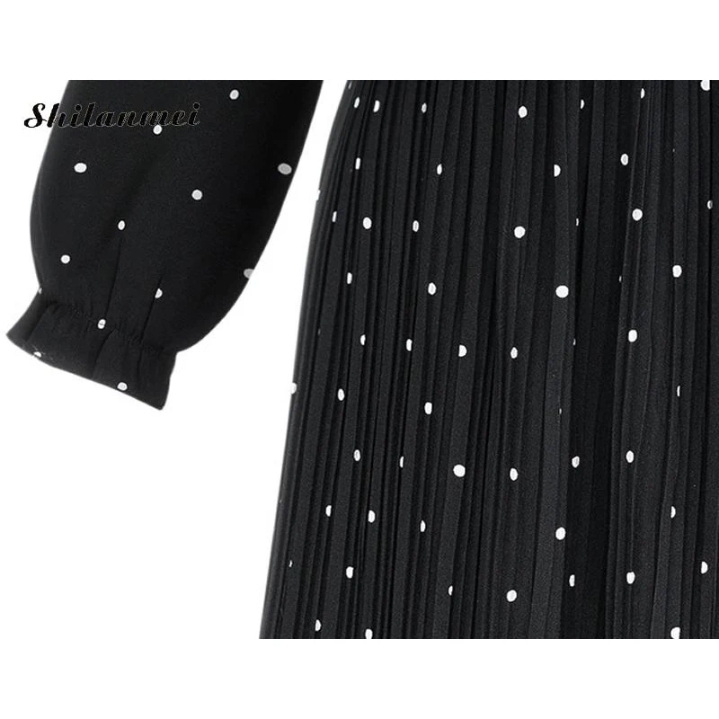 Achat Élégant Noir À Pois Robe Longue Femmes Plus La Taille À Manches Longues En Mousseline de Soie Plissée Maxi Robes Casual Vestidos 2018 D été Jurken Pas Cher Prix
