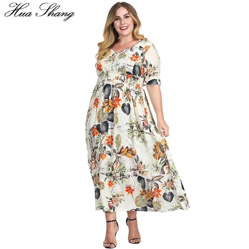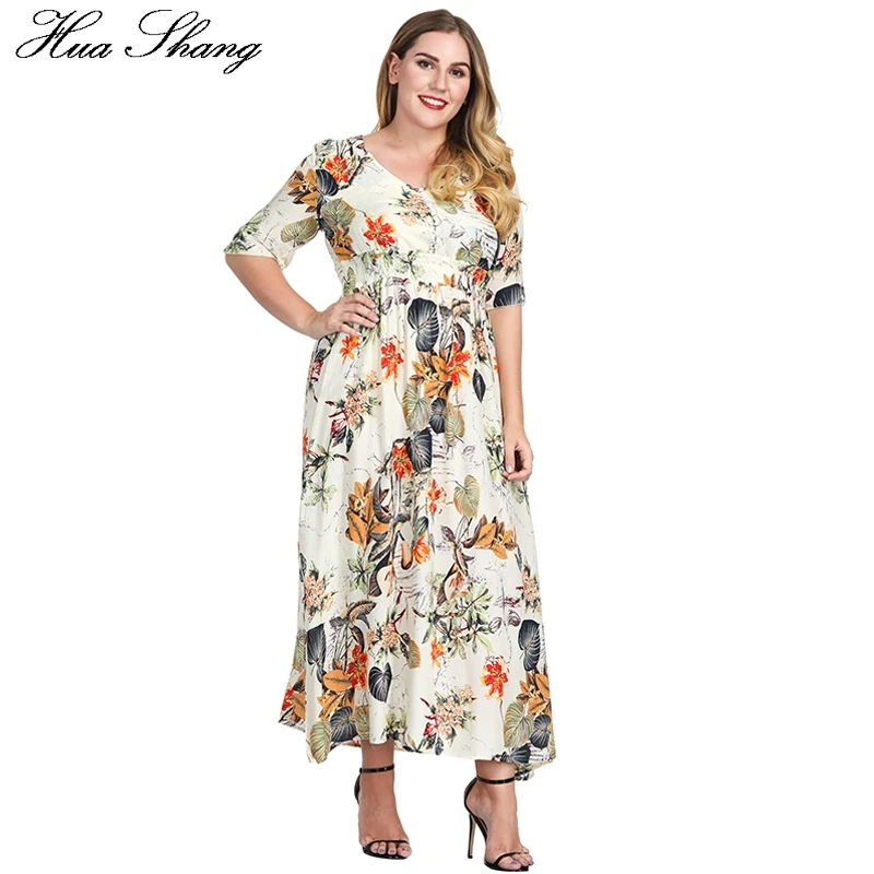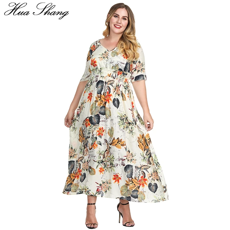 Achat Meilleur Floral Robe D été Plus La Taille Femmes Maxi Robes Longues Grande Taille Imprimer V cou Bouton Élastique Taille Tropical Tunique Plage Robe Pas Cher Prix.